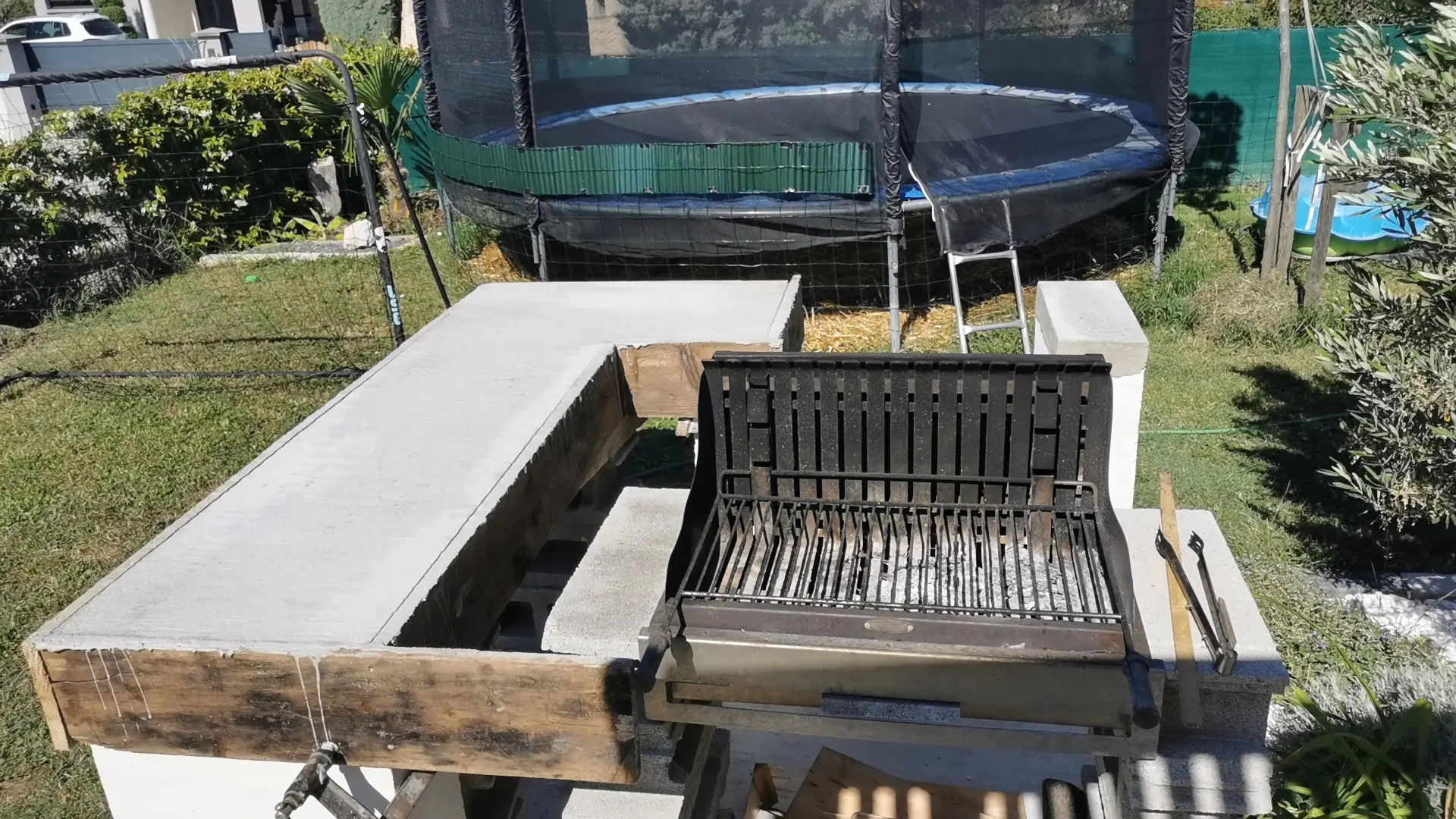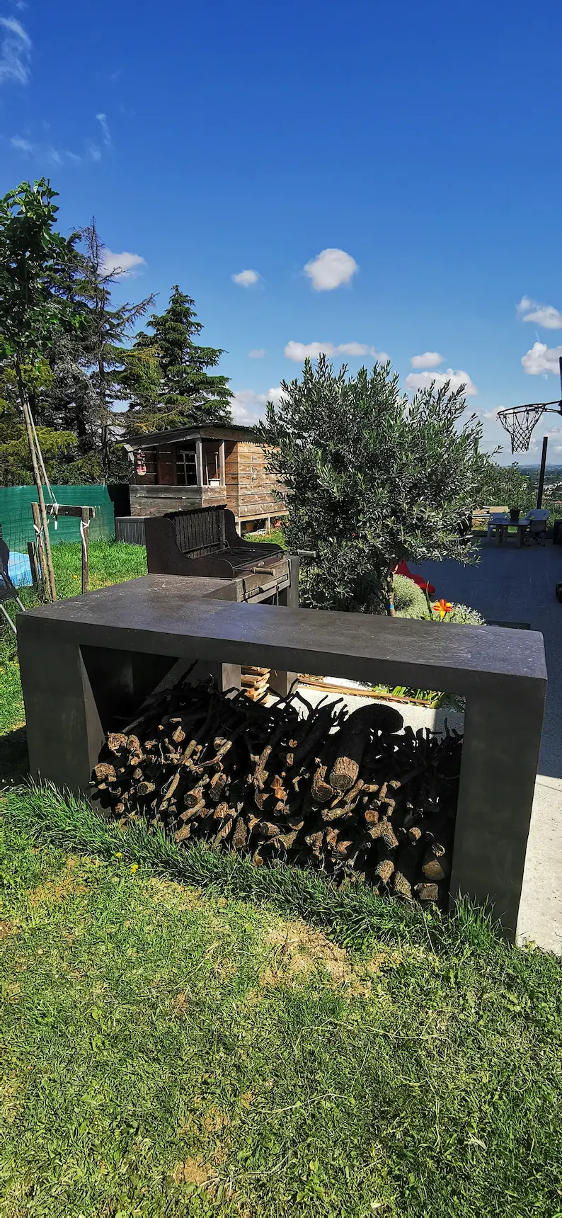 Un barbecue d’extérieur sublimé par un béton ciré couleur carbone, pour un rendu moderne, élégant et parfaitement intégré au jardin.