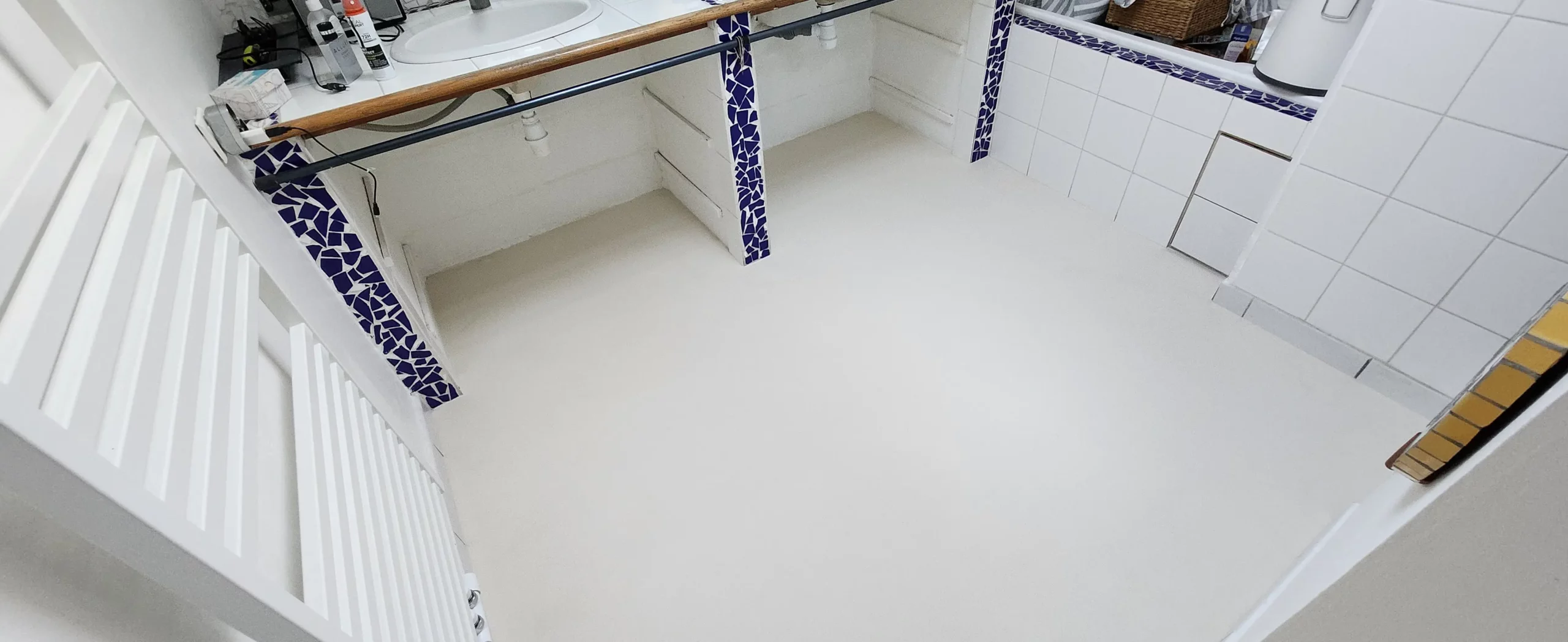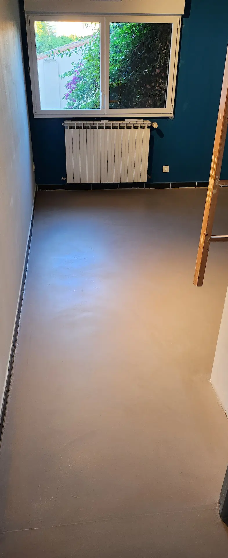 Un sol en béton ciré qui illumine cette chambre sous combles, apportant modernité et chaleur tout en sublimant les volumes de la pièce.